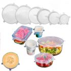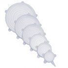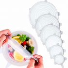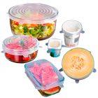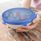 6 x Tapas de silicón flexible en diferentes tamaños para alimentos y recipientes.